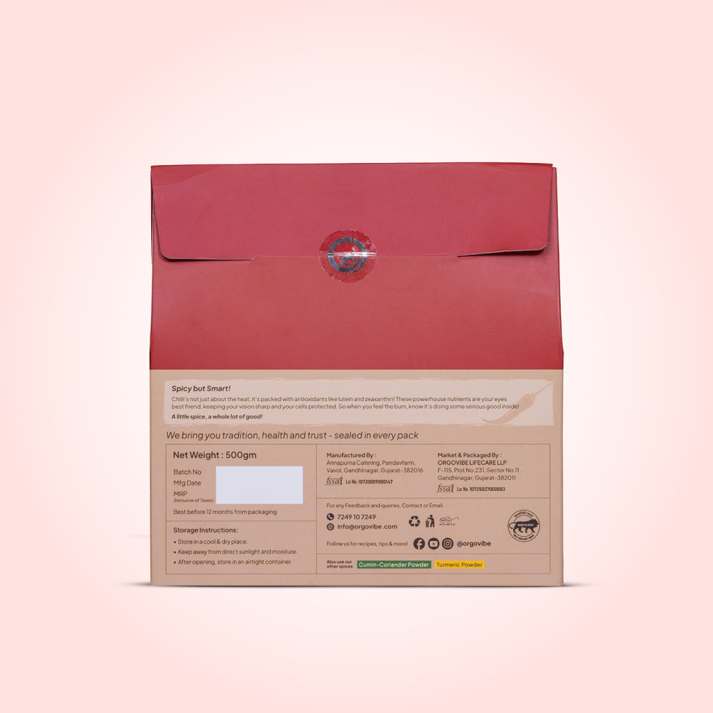 Red Chilli Powder is made from dried and ground red chillies, belonging to the Capsicum family. Known for its vibrant color and sharp flavor, chilli powder is an essential spice in many cuisines. It not only adds heat to dishes but also carries traditional medicinal properties due to the presence of capsaicinoids.